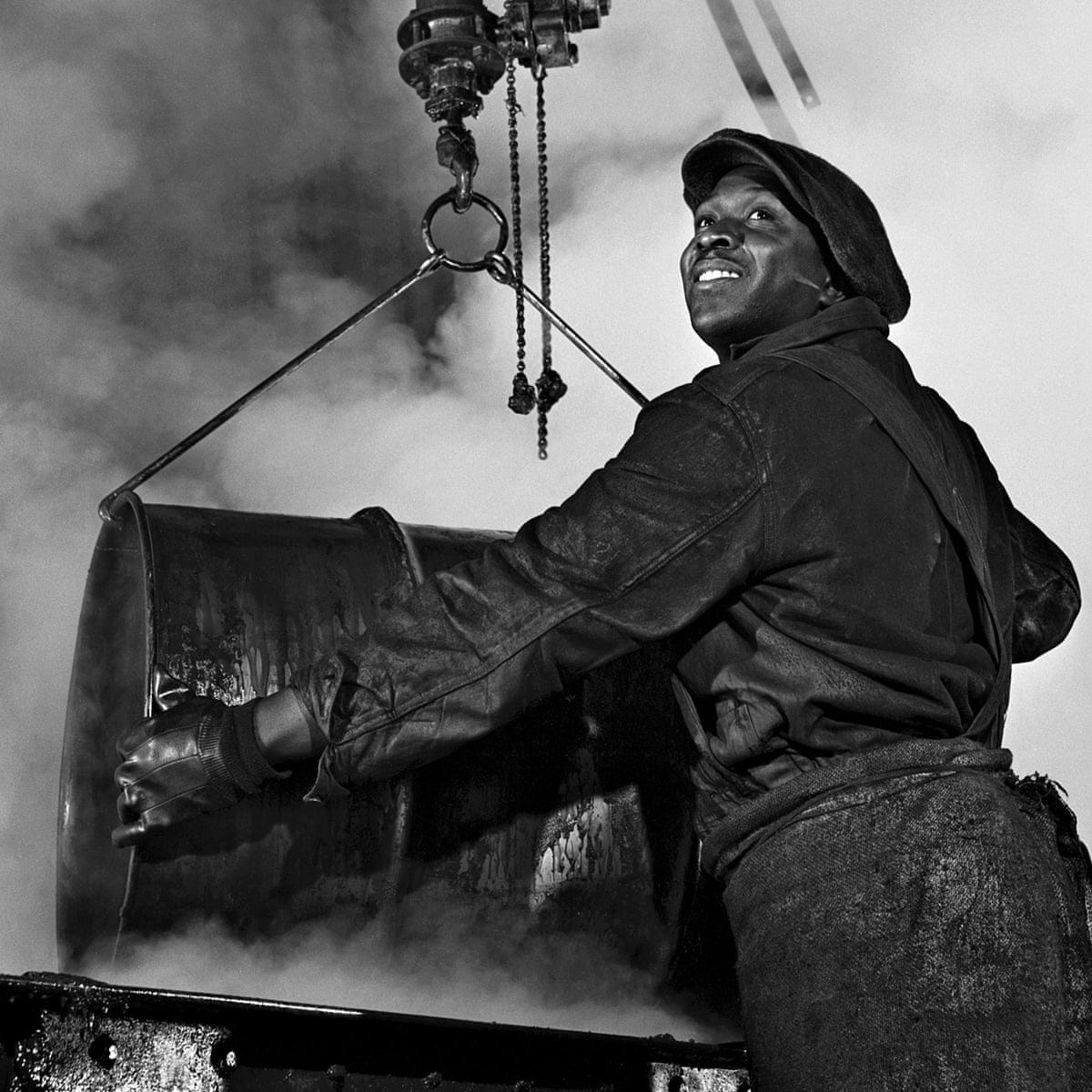 There is a Gordon Parks photograph I return to. A Black worker in a Pittsburgh grease plant, steam rising around him, heavy labor etched into the scene. And he is smiling—not for the camera, not performing, but because something inside him has remained intact.
